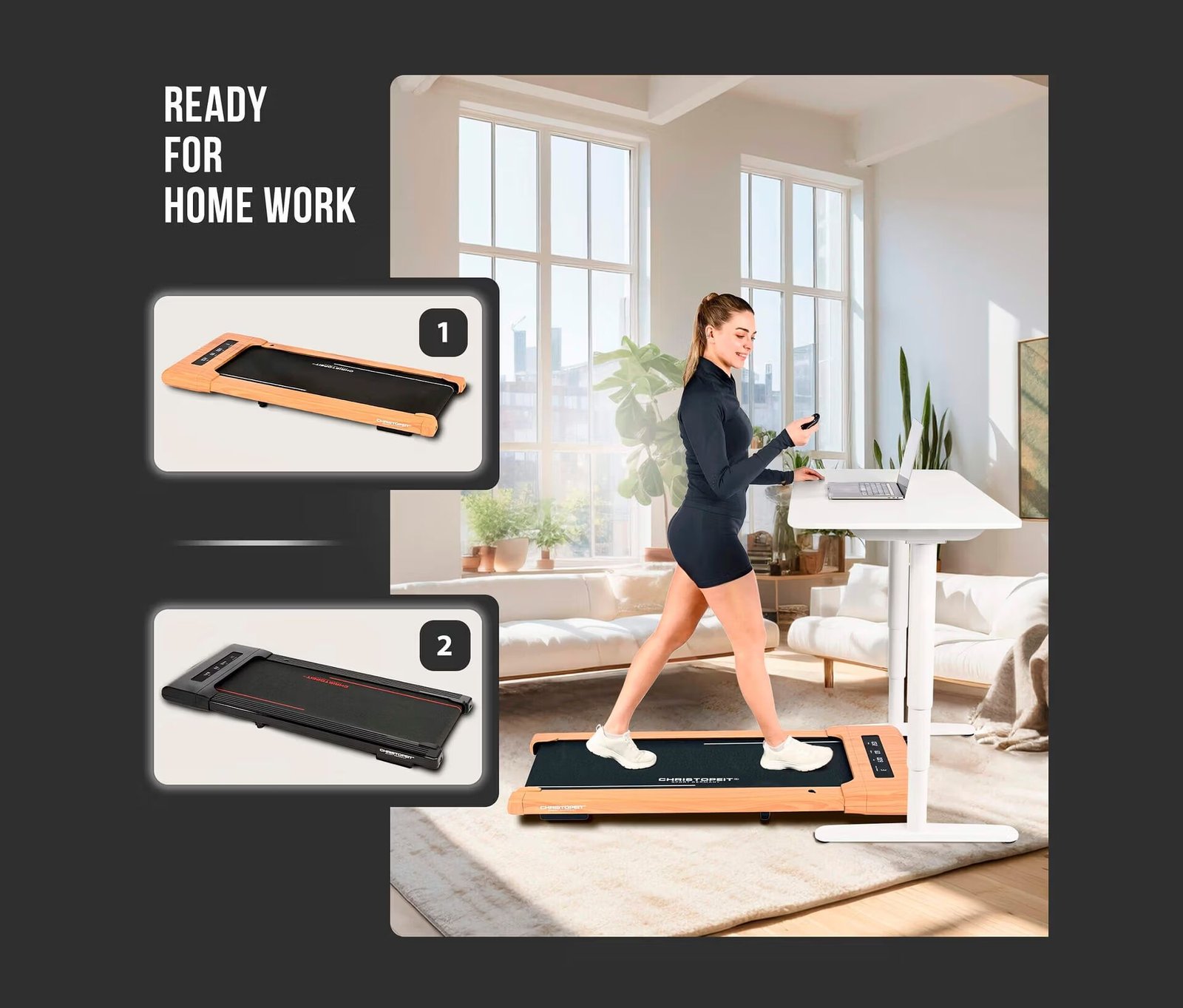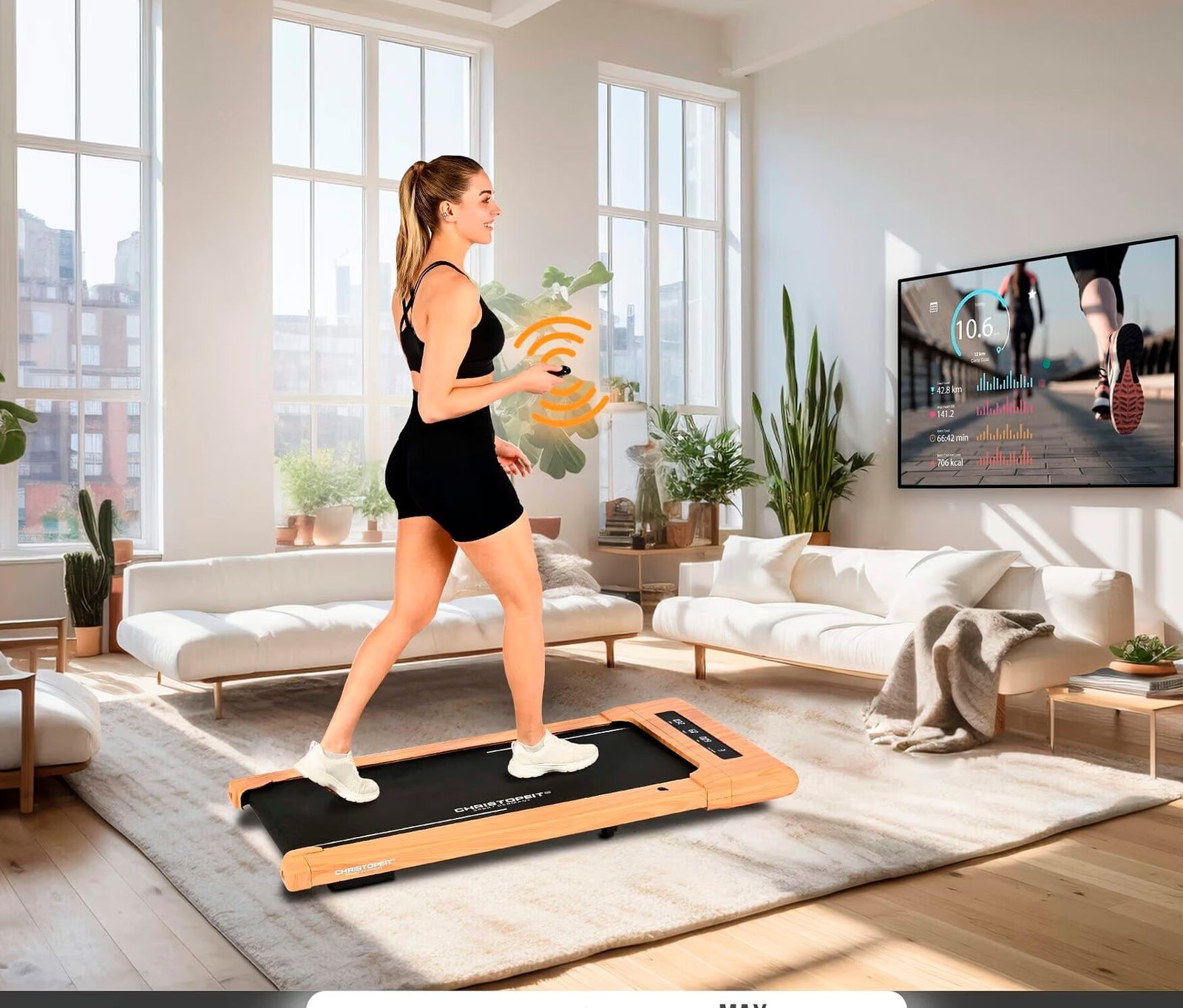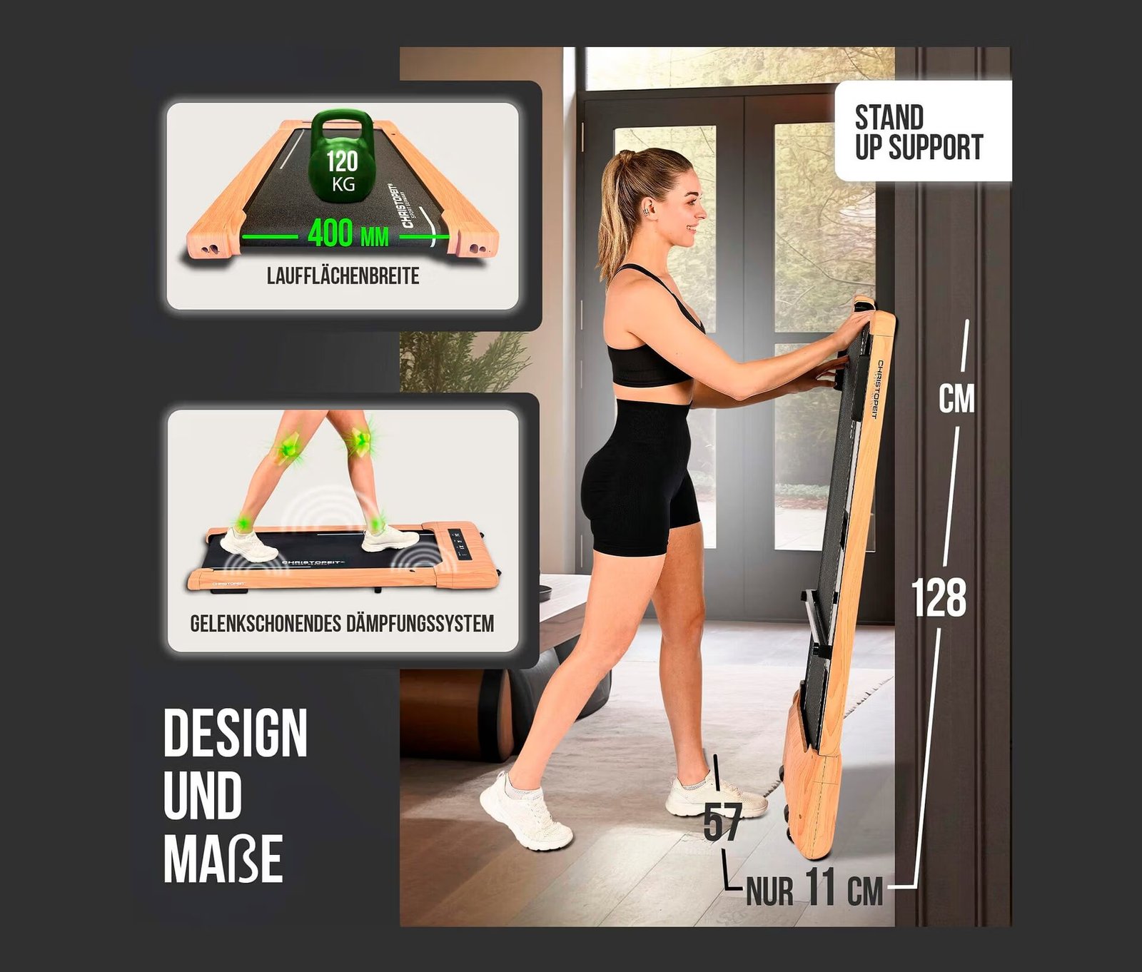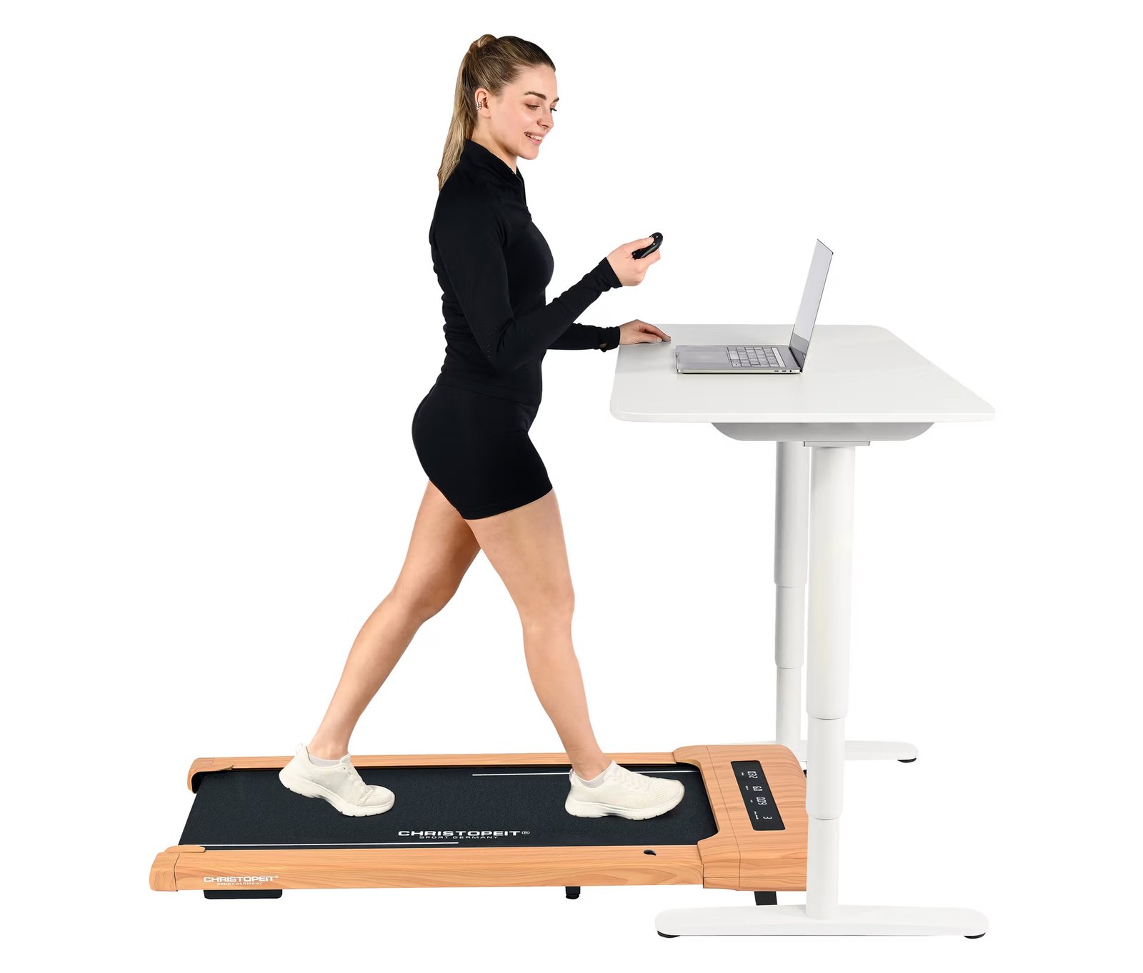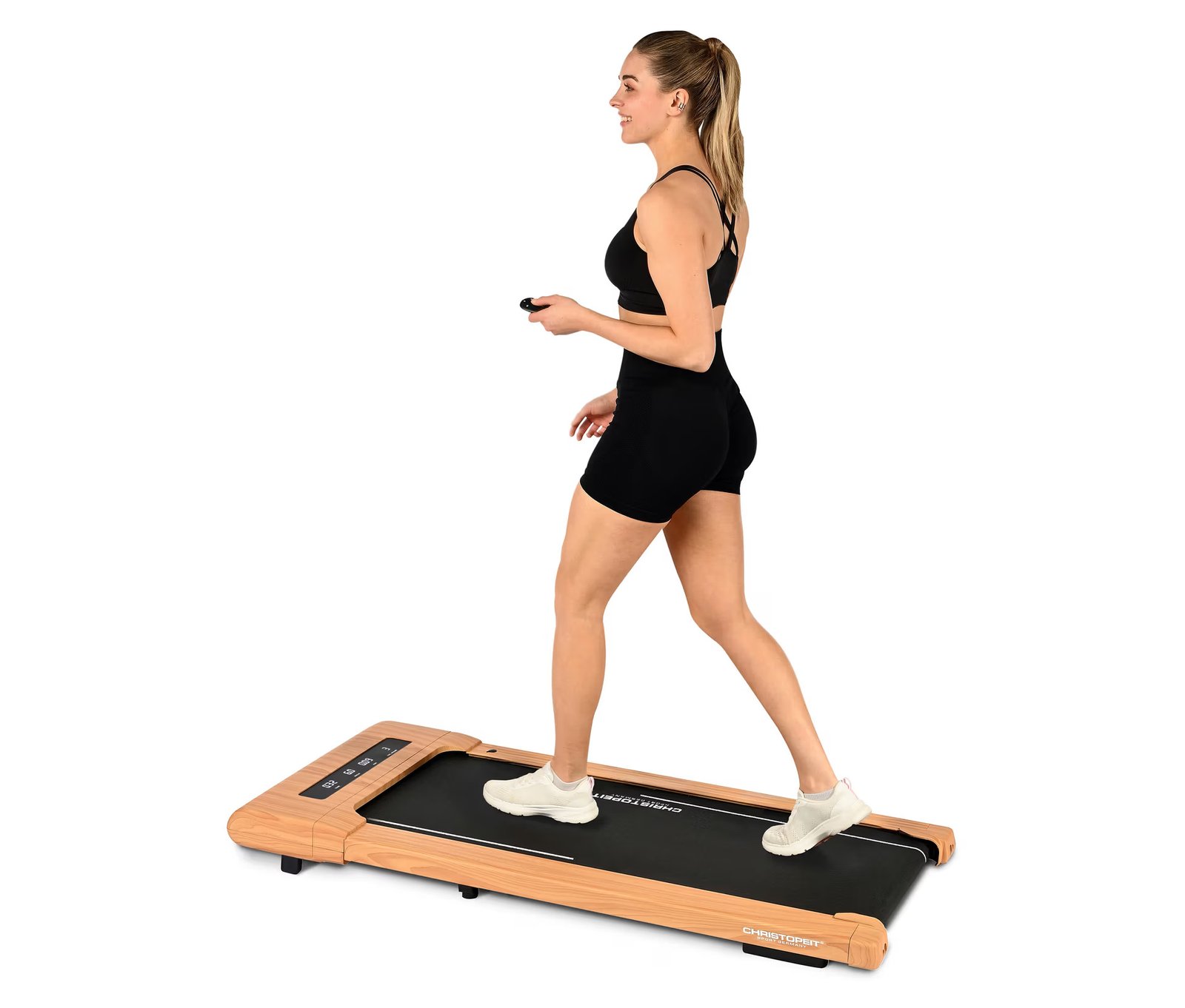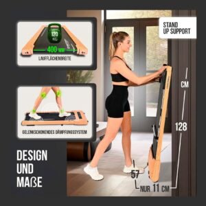 Le tapis de marche Christopeit 4.2 au design élégant effet bois est idéal pour vos séances de marche quotidiennes jusqu’à 6 km/h. Compact, silencieux, 100 % pré-assemblé et connecté, il s’adapte parfaitement à la maison ou au bureau.